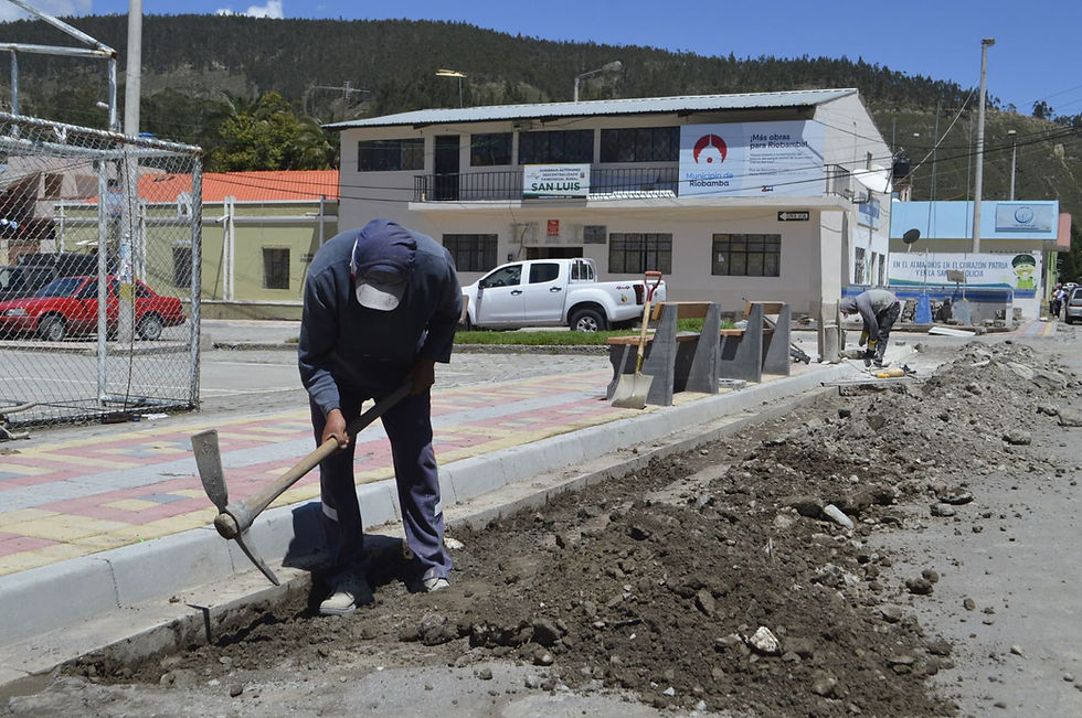 Parroquias// La rehabilitación del entorno del parque central de la parroquia San Luis se encuentra en un avance del 95%.