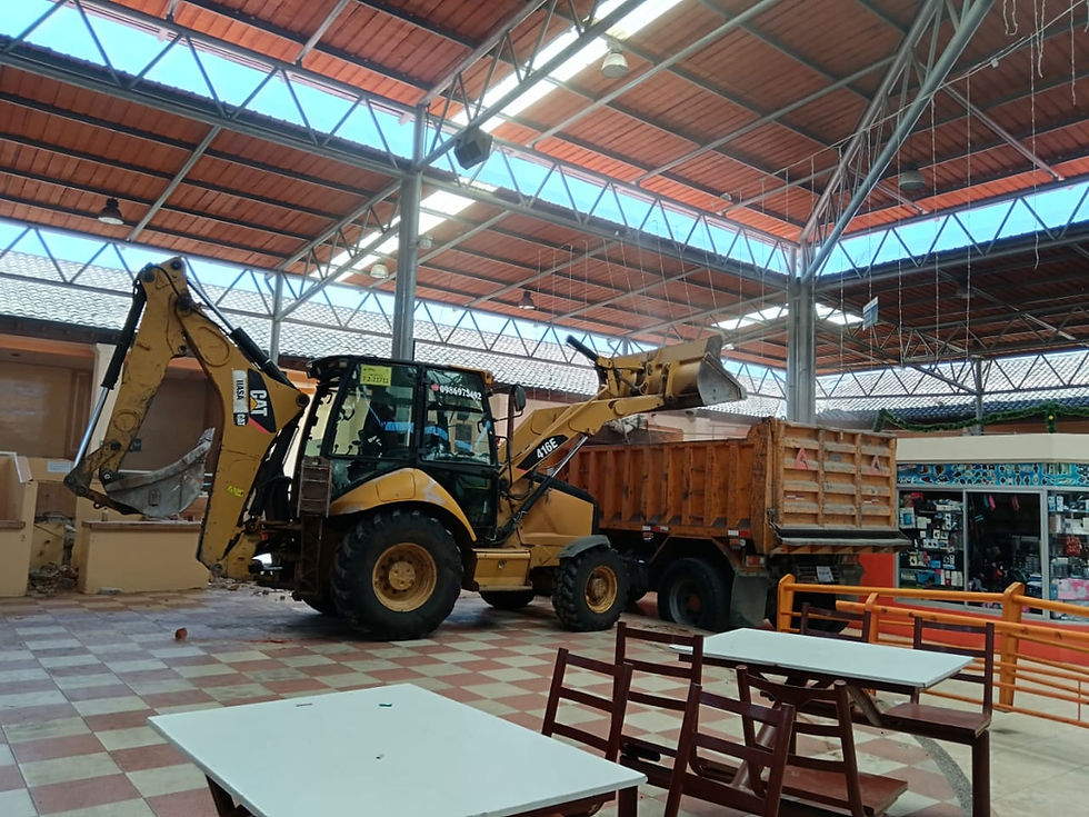 Obras// Inició la demolición controlada de un bloque de canceles en la sección de comidas del mercado Pedro de Lizarzaburu "San Francisco". Esta acción tiene como objetivo ampliar el patio de comidas, generando así un espacio más visible para los locales circundantes, con la intención de impulsar y dinamizar el comercio en el este lugar.